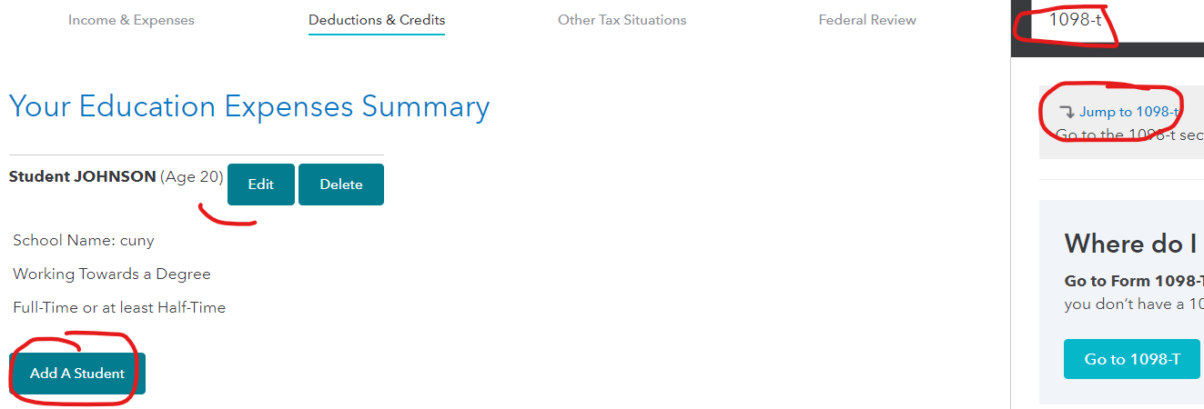 Trying to claim 18yr old son as dependent. He is a full time college student. I have filled all the forms about him being a student, but TTax won't show him as a dependent or let me claim his tuition expense and other expenses such as computer and books required. I have form 1098-T from the school and completed the info in TTax. Our income is below the 160,000 limit. What could I be boing wrong?