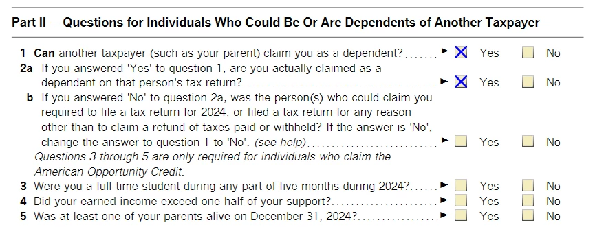 PROBLEM: Under Form 8615, "Child 18 to 23 Smart Worksheet", I cannot click on 'yes' to complete this form. TTax has determined the answer is 'No' and I cannot override it.