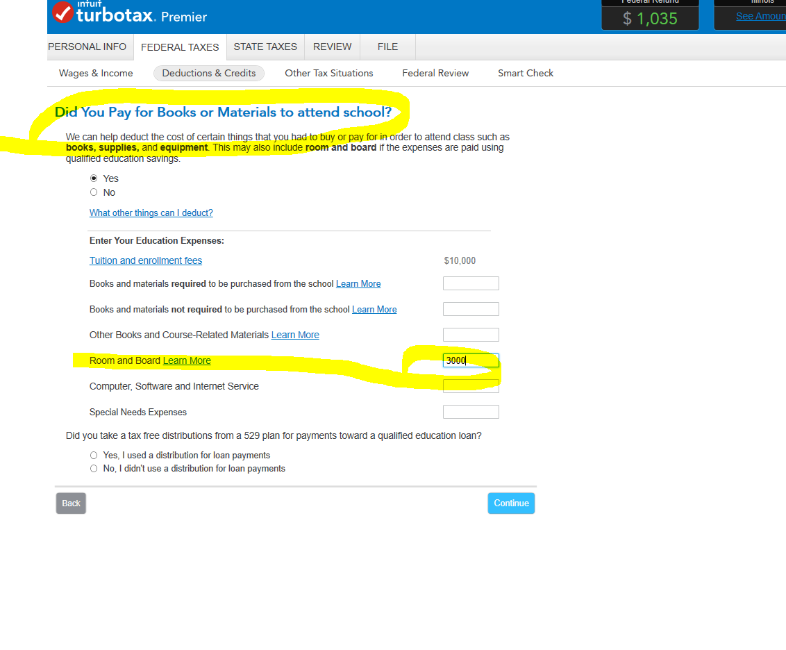 You can just not report the 1099-Q, at all, if your student-beneficiary has sufficient educational expenses, including room & board (even if he lives at home) to cover the distribution. When the box 1 amount on form 1099-Q is fully covered by expenses, TurboTax will enter nothing about the 1099-Q on the actual tax forms. But, it will prepare a 1099-Q worksheet for your records. You would still have to do the math to see if there were enough expenses left over for you to claim the tuition credit. You also cannot count expenses that were paid by tax free scholarships. You cannot double dip!