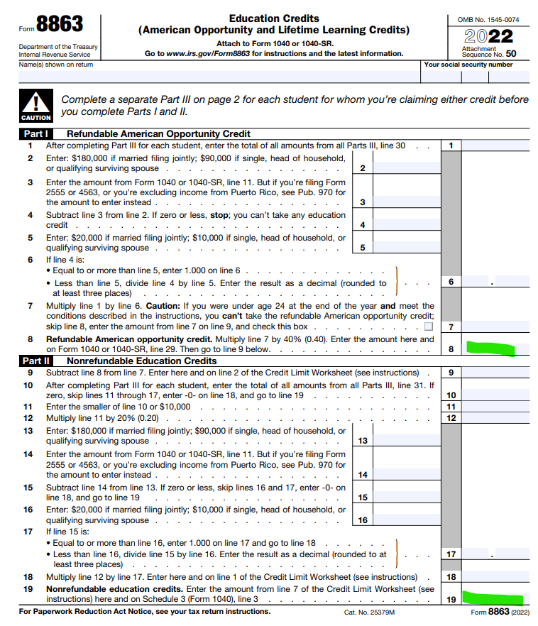 You said the filing page? Is this on your Form 1040 and attached Schedules? American Opportunity Credit is on Line 29 of your Form 1040 and the Lifetime Learning Credit is on Line 3 of Schedule 3. They are both listed on Form 8863.