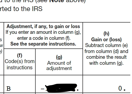 I am using Turbotax Premier, as was in previous year. This reporting of this type of stock sale is always stressful, as it double counts, unless I fix it in Turbotax flow and I have been vary of it every year. What that does is this: It updates the Form 8949 (Part I), with column (g) in the "Amount of Adjustment" column with similar -ve value.