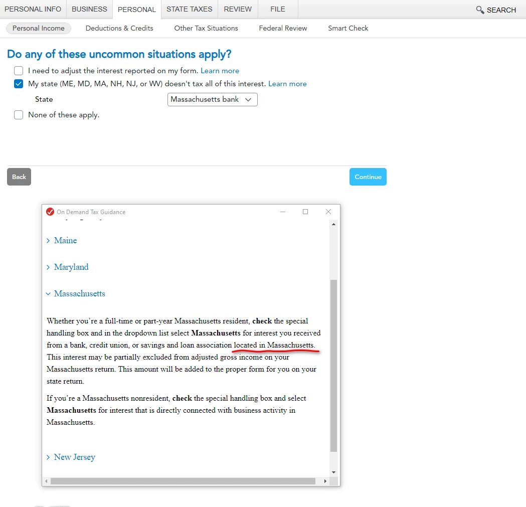 I am in MA. 1099-INT from Fidelity, its address is in NJ. But our accounts were opened in its branch in MA. Should I check that checkbox?