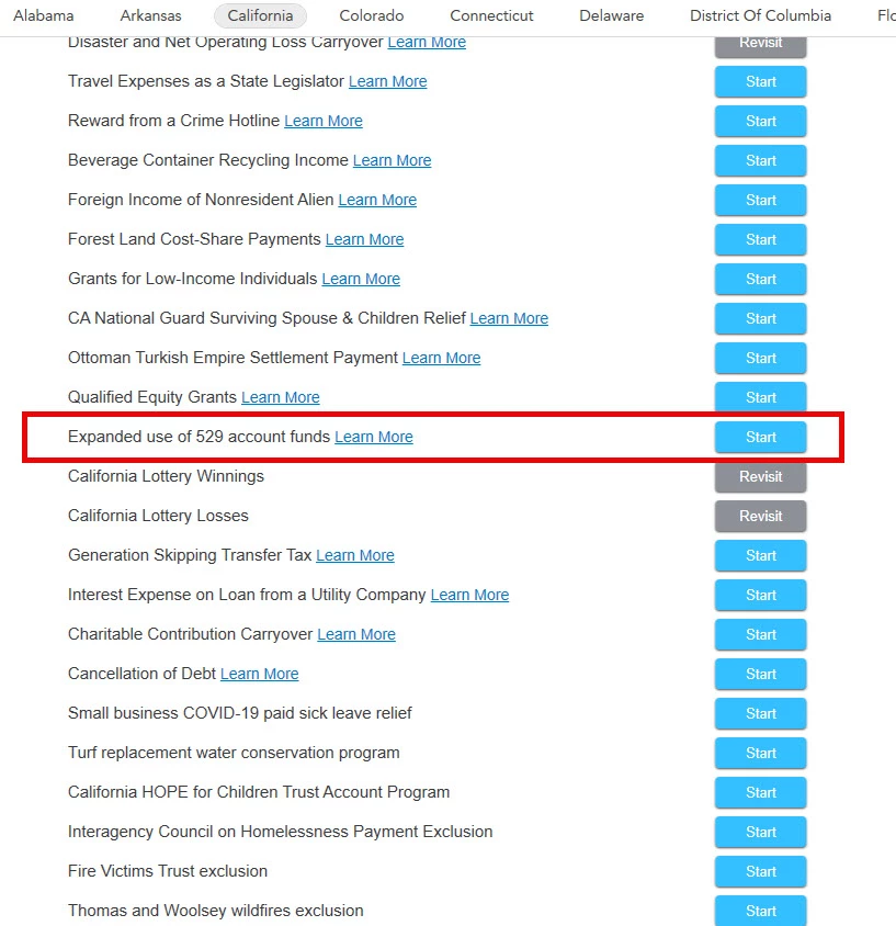 2) Because CA does not comply with the federal law for 529 to Roth rollovers, the earnings portion of the distribution does have to be entered in TT, does he needs to wait until the 1099-Q arrives or can he just enter the earnings portion indicated to him by the 529 representative on the phone as an adjustment to income? He has already seen the directions that TT expert AmyC has posted on how to do this.