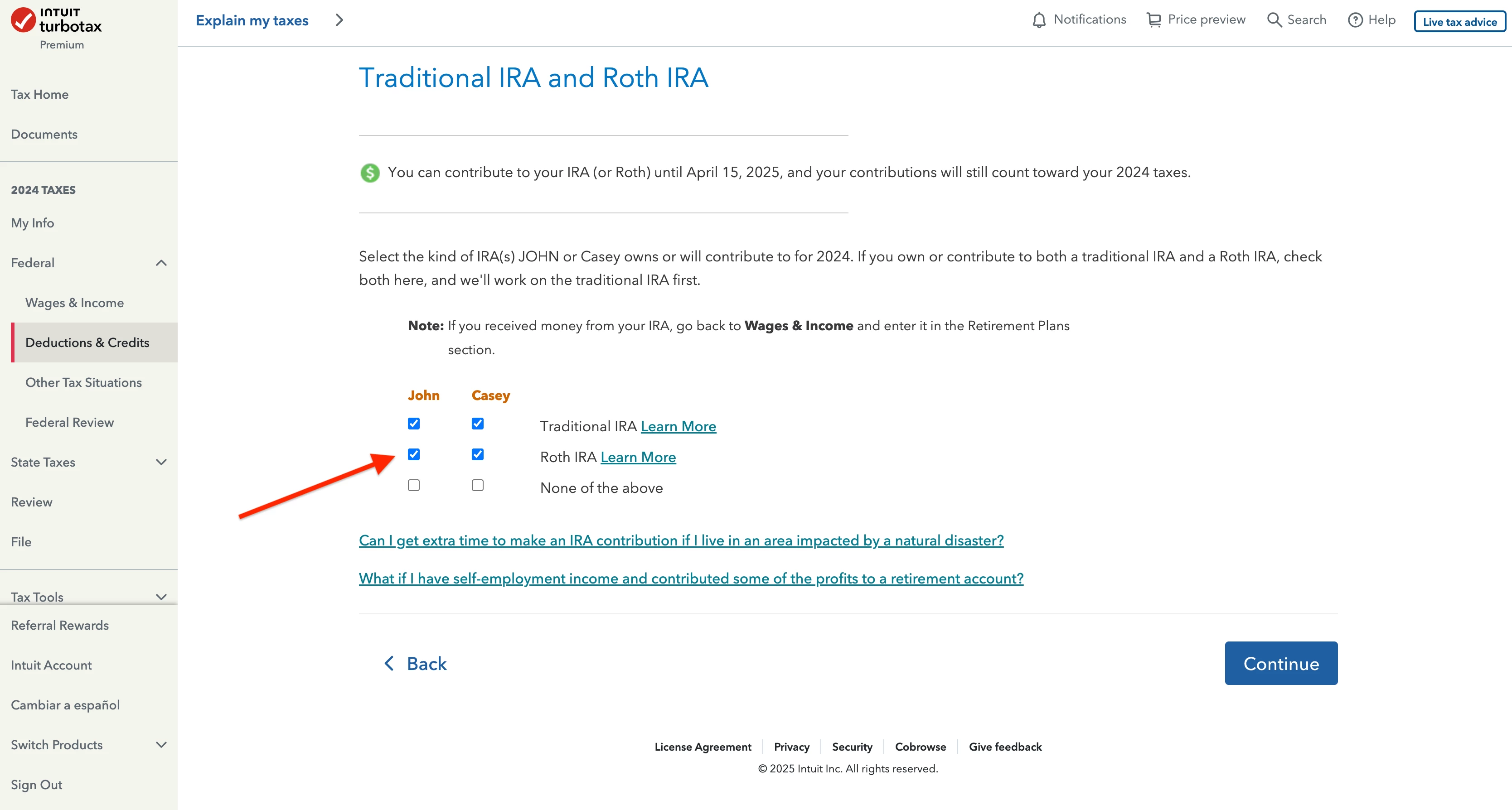 While going through the Deductions & Credits section in TurboTax, I noticed an option to select the type of IRA we contributed to. Should I select only Traditional IRA, or should I select both Traditional and Roth IRA since we converted the amount?