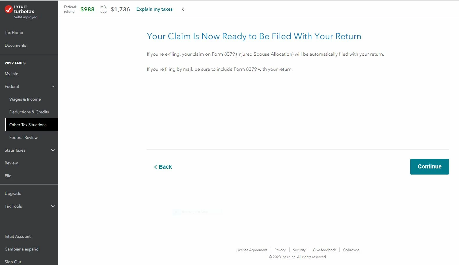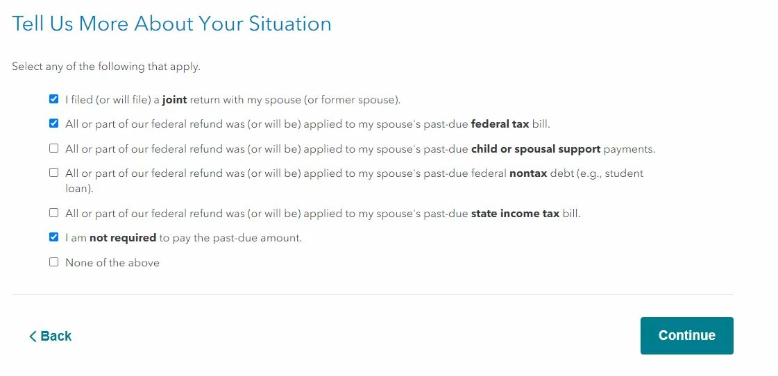 Note: Pay close attention to the screens, as some of them apply to innocent spouse relief, which is different. Leave those questions blank if you only want to claim Injured spouse relief.