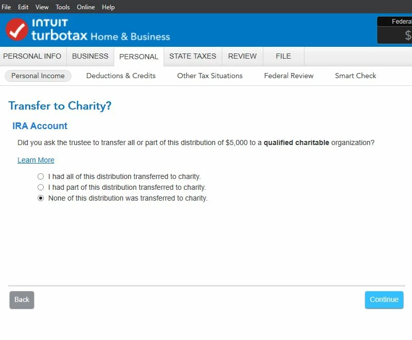 I made a Charitable Gift that was funded from my IRA. The entire amount was the Required Minimum Distribution that I would be normally added to my income. However, since this was a Charitable Gift then the entire amount should be excluded from my gross income. The problem is that my 1099R states that this was a "Normal Distribution".
