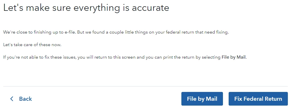 TurboTax does not continue because I have to revise this somehow, but whatever fix I make TurboTax says that it is unfixed yet.