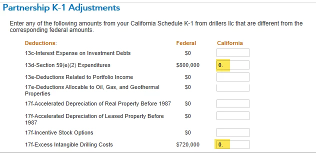 My 2024 California tax return is not adding Intangible Drilling Costs as taxable amount reported on schedule K-1. Even the amended tax return has same issue, in spite of help from the turbo tax support representative. Could you confirm if Turbo tax online premier software does not support 2024 California law disallowing deduction for Intangible Drilling Costs (IDSC)? If yes, what is the solution?