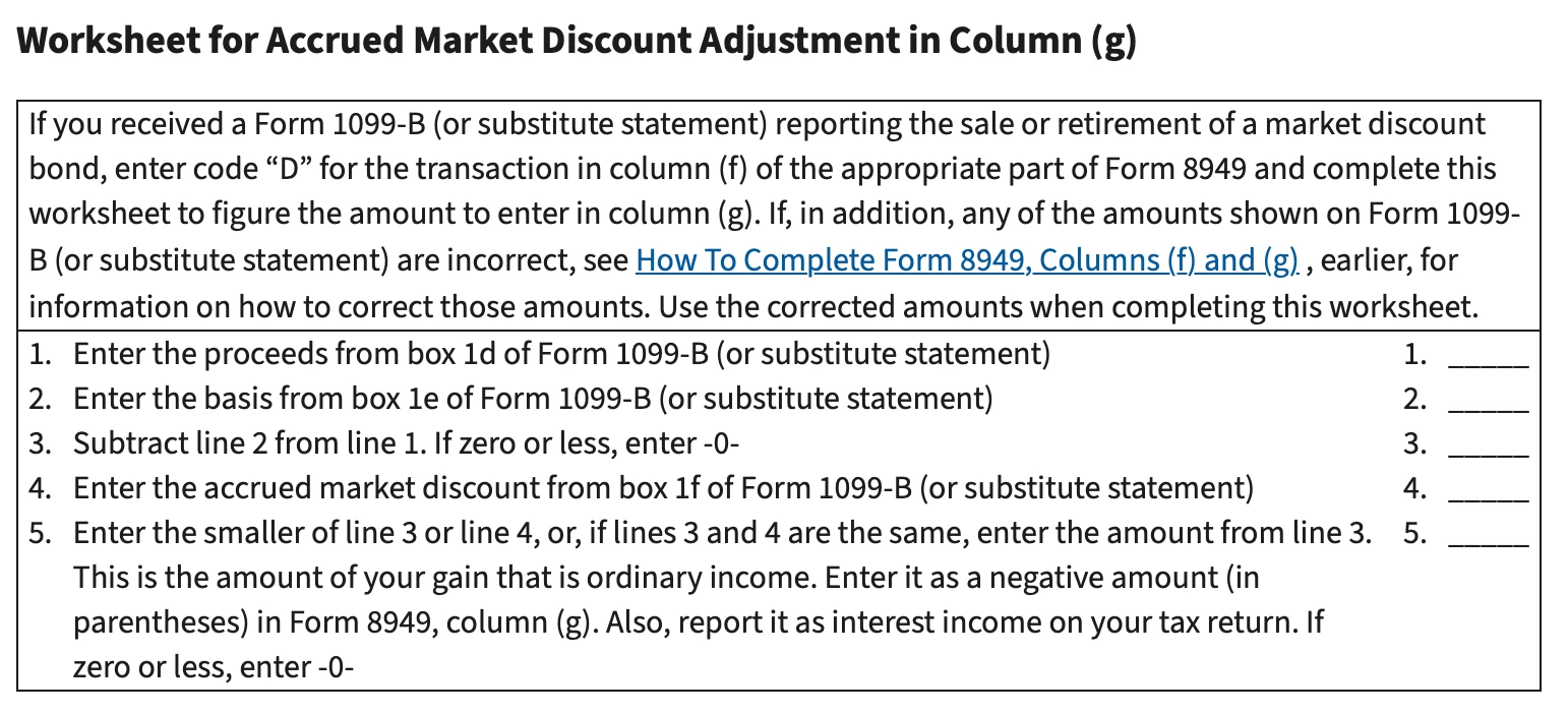 On my monthly statements from Fidelity, in the Capital Gains section, I have inputs listed as “Total Realized Accrued Market Discount” in the amount of $1236.19 on my 1099-B.