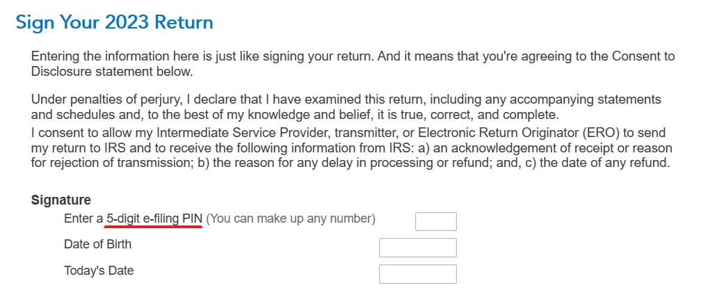 The e-file section is not asking for your IP PIN. It's asking for a 5-digit e-filing PIN. Read the screen carefully. See the screen shot below. You can enter any 5-digit number of your choosing. (It says on the screen "You can make up any number.)