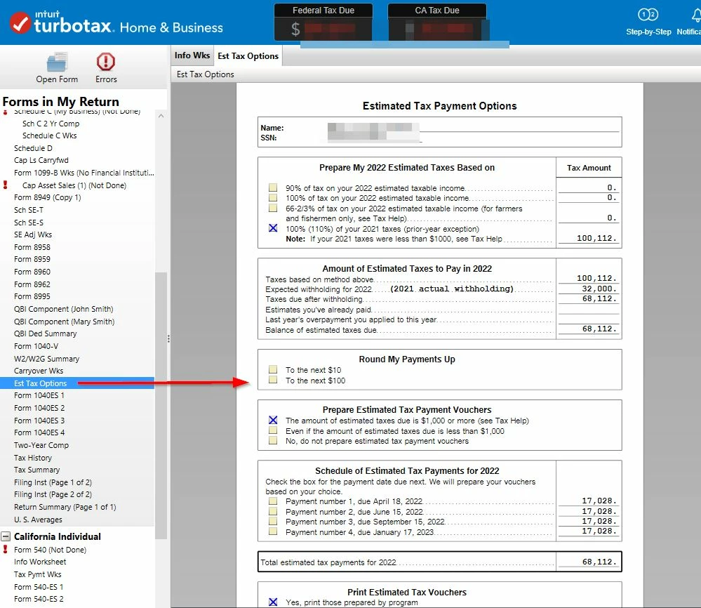 Is there a way to make Turbotax change to way it figures estimated taxes?