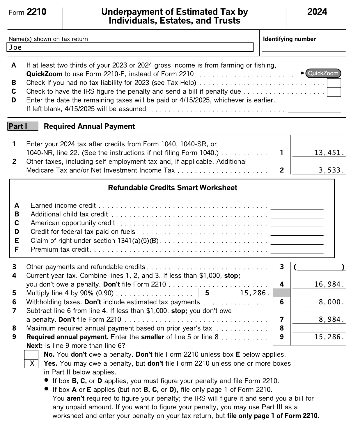 Estimated taxes for only 2 months