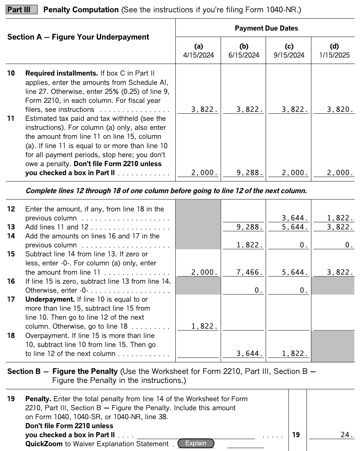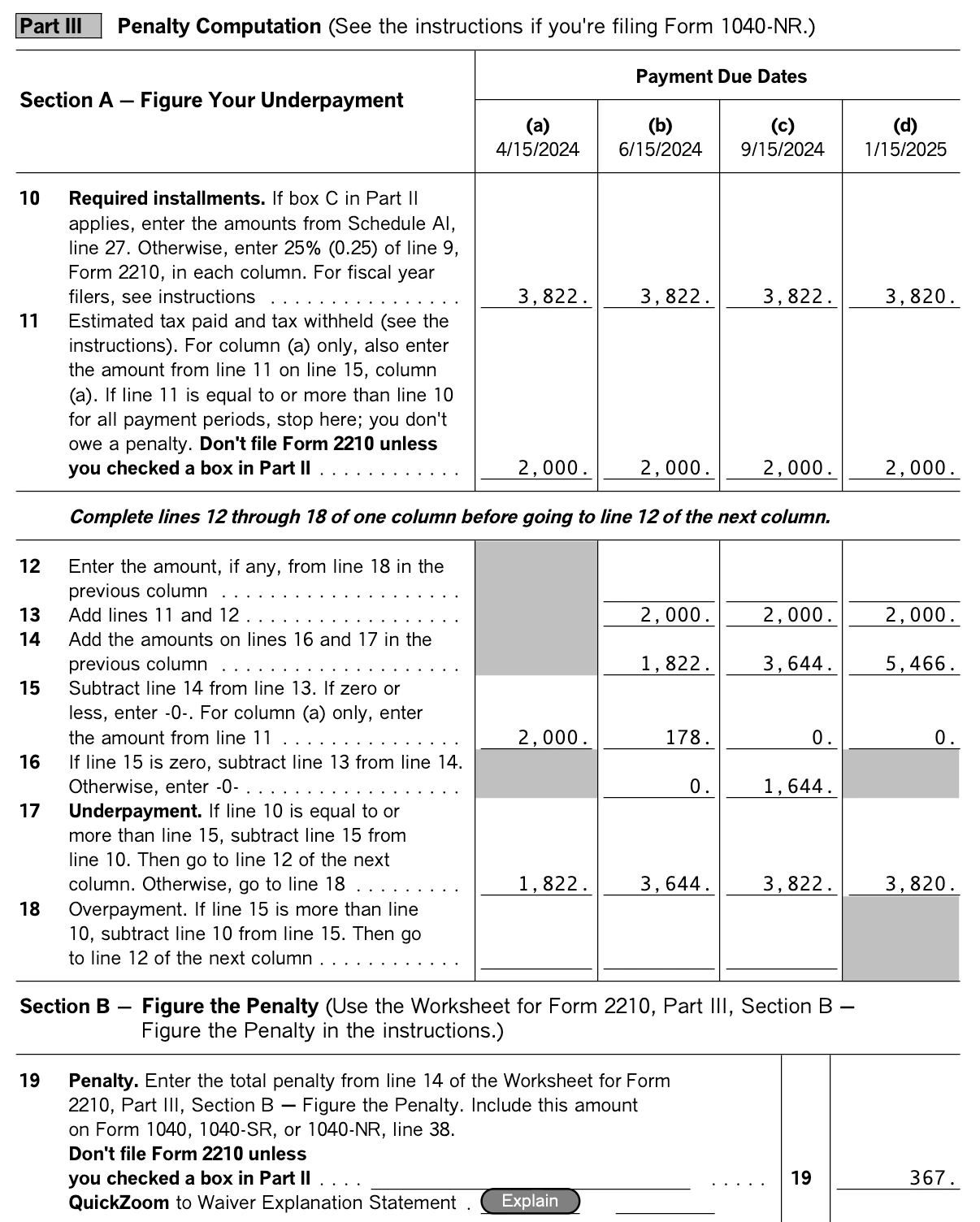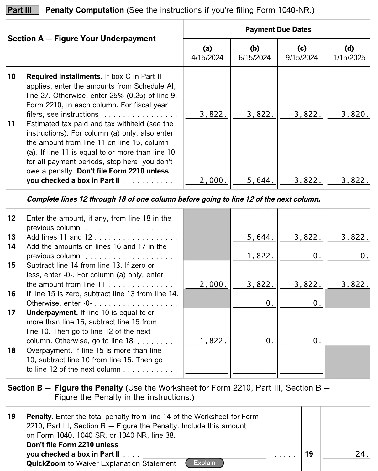 Can I just make 1 estimated payment in June and not pay anything else for the other periods including the previous March period without incurring a penalty?