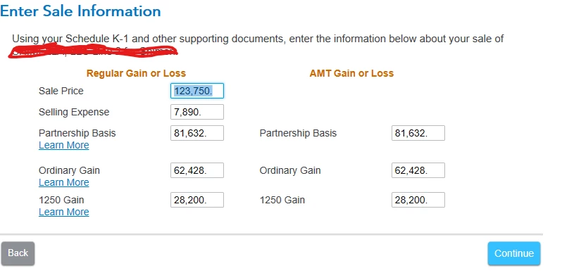 I selected the K-1 in TT premier, selected general partner, this partnership ended in 2023, complete disposition, sold partnership interest. Next, I entered purchase and sale date. At this time, I was asked to enter sale information and see a review, see attached.