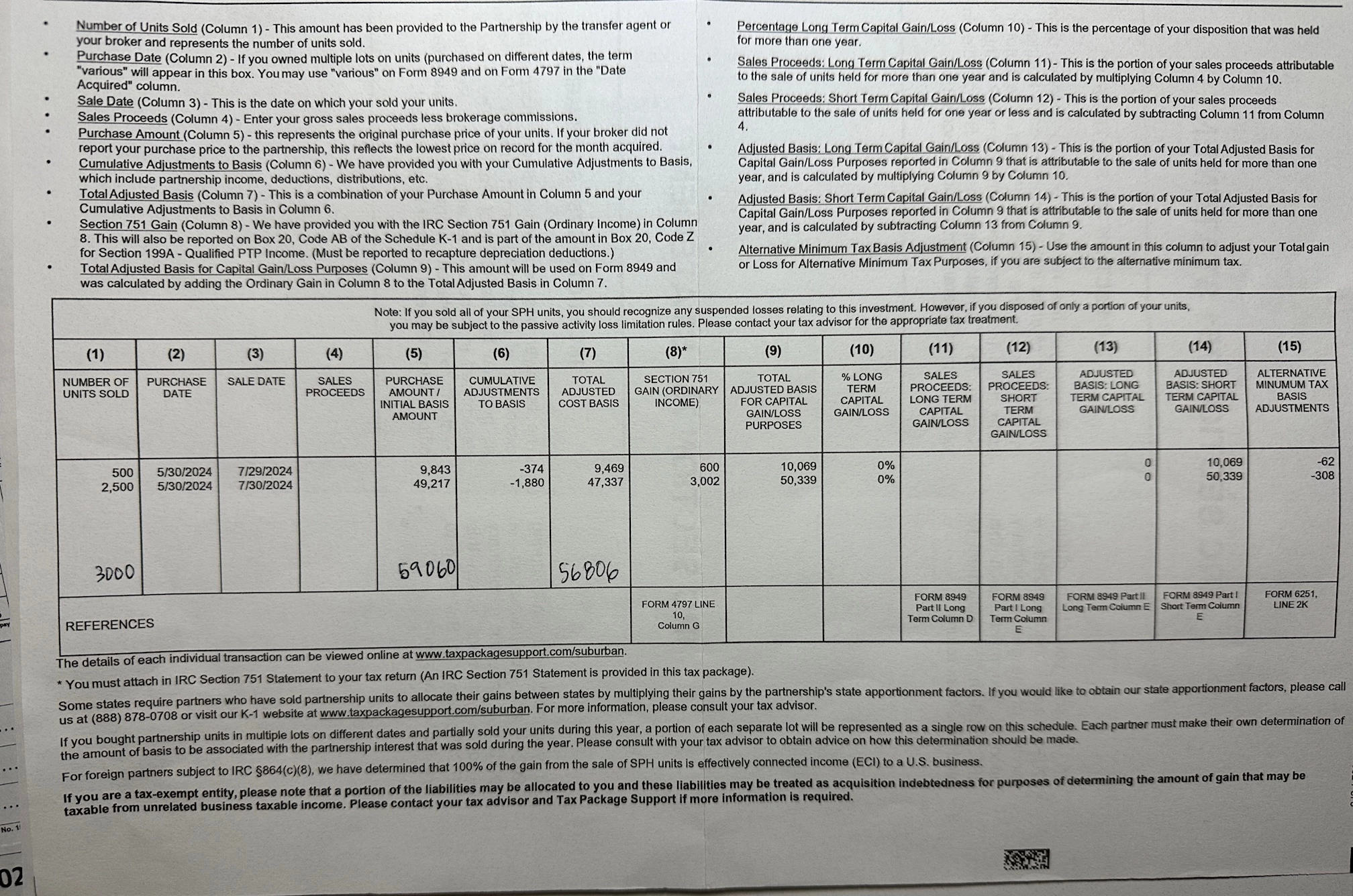 Here is my K-1, and Sales Schedule information (I hope this is legible):