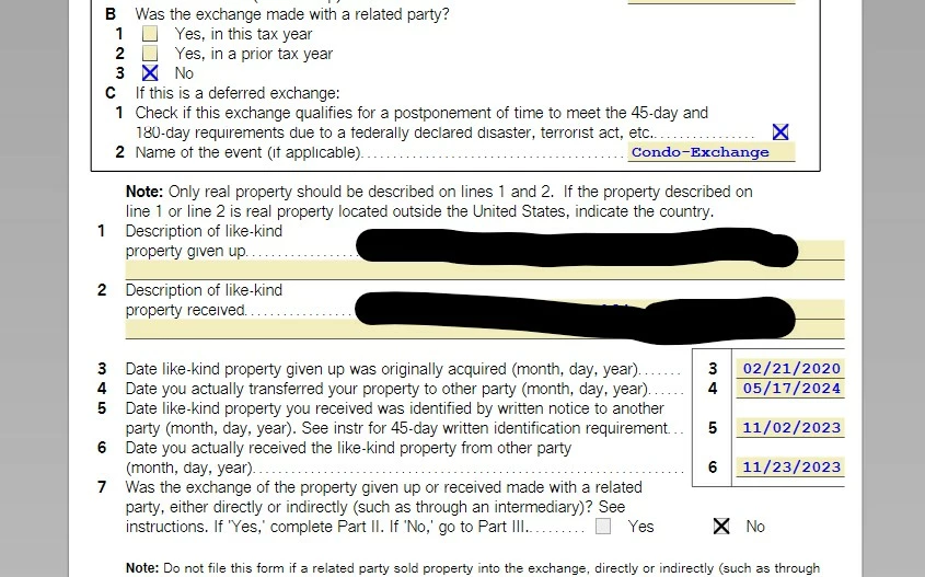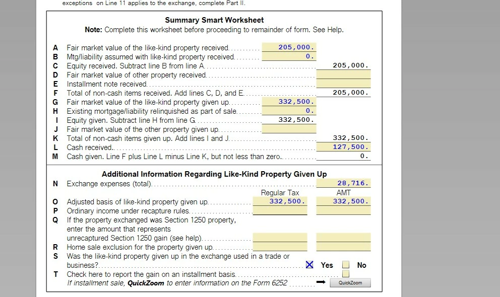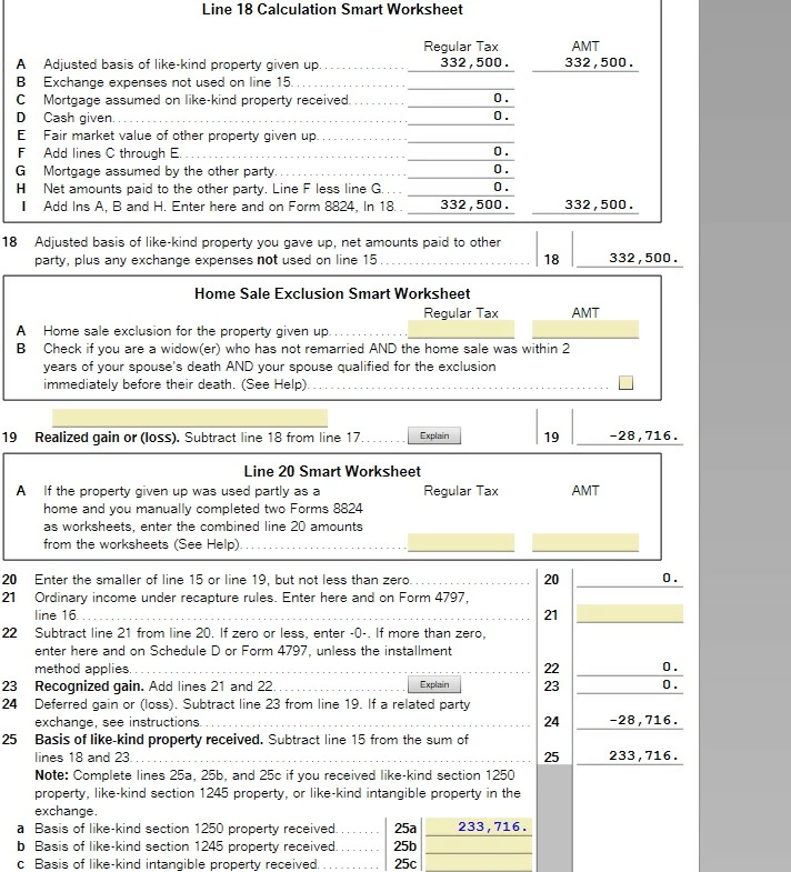 i have reverse exchange 1031, i swapped a condo. for some reason, desktop software is showing loss even though it is not. i believe it has a problem understanding straight exchange vs reverse.