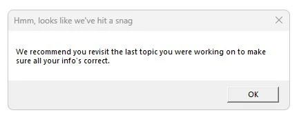 The updates that were applied this morning when I opened TurboTax did not resolve my issue with Personal Property Taxes. I still get the error "Hmm, looks like we've hit a snag" when accessing the Personal Property Tax topic in the step-by-step navigation.