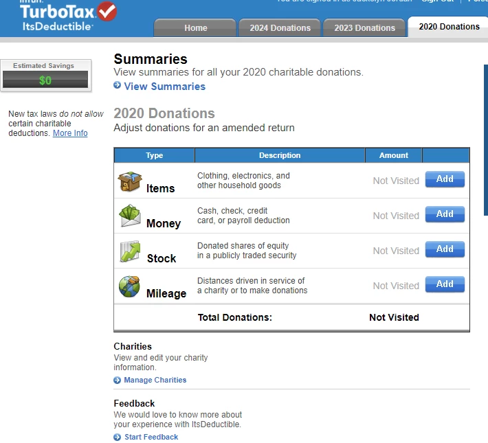 I need a print out of the donation items I made from 2020