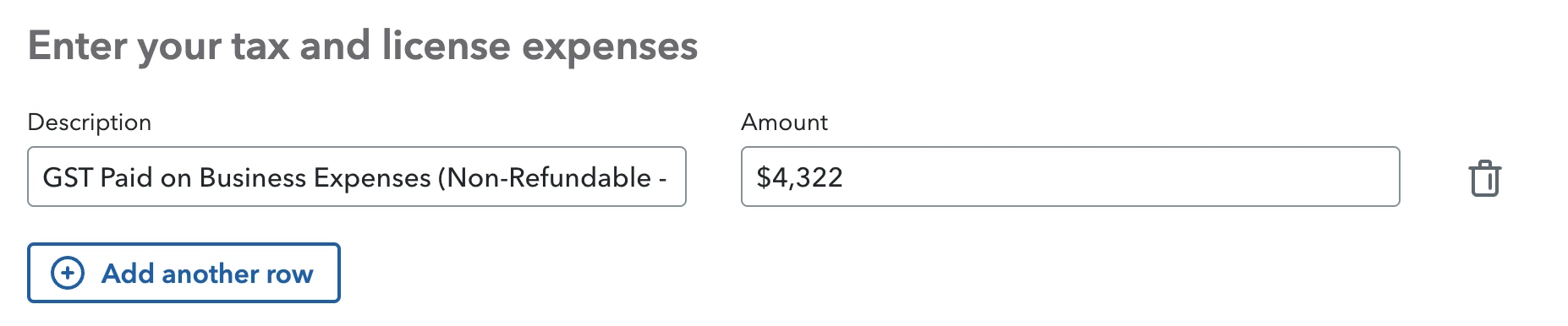 In this I have questions about whether can I deduct the GST paid as Business expense or not? Based on the online information I have added it as Taxes & licenses expenses to deduct from the business income. Below I have provided screenshots to show how I'm doing it.
