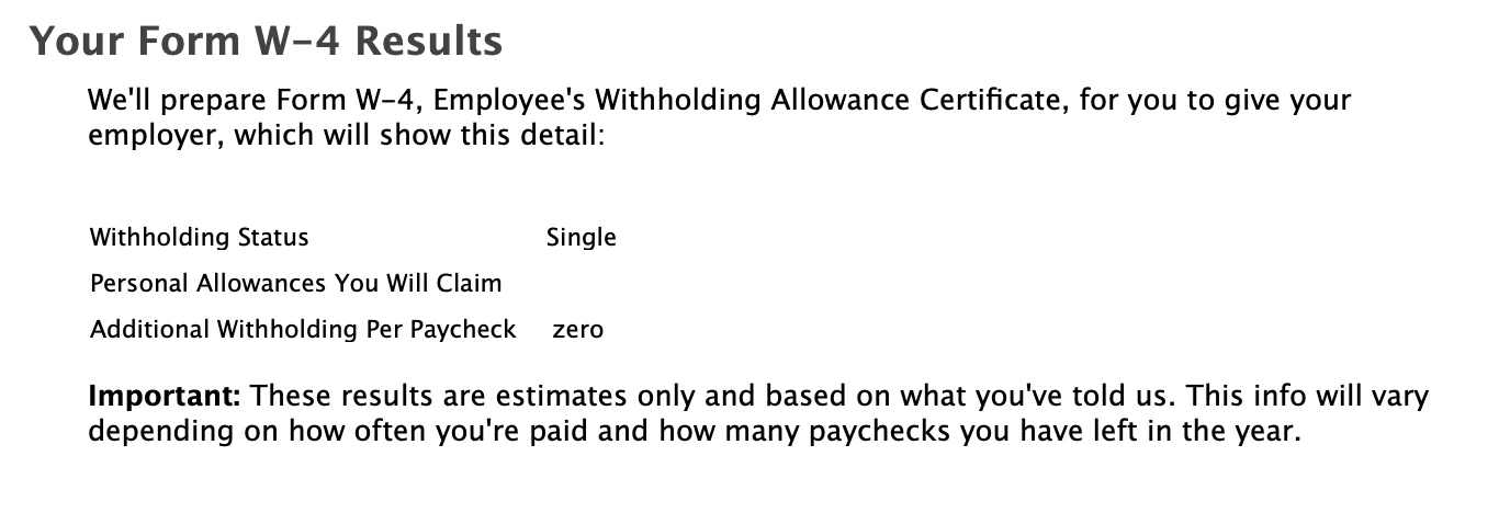 You can click through that section. TurboTax will generate a ES & W4 Worksheet. But you don't have to do anything with it. Nothing will be changes unless you print out the form, sign it and give it to your employer. So, you can delete it from your forms list if you don't need it, or throw it in the trash if it prints.