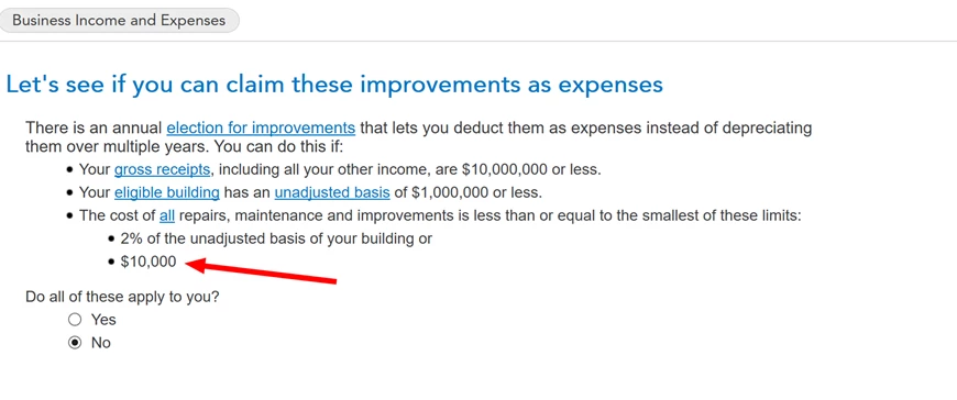 The cost is over $2,500, so it is definitely not eligible for the De Minimis Safe Harbor Election. Since it is not over $10,000, I just wanted to know if it qualifies as a home improvement for the Safe Harbor Election for Small Taxpayers so that I don’t have to capitalize and depreciate it over the years.