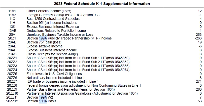 Am I right that the 20Z value of -263 described as "Section 199A Publicly Traded Partnership (PTP) Income" is income from another business that happens to itself be a PTP?
