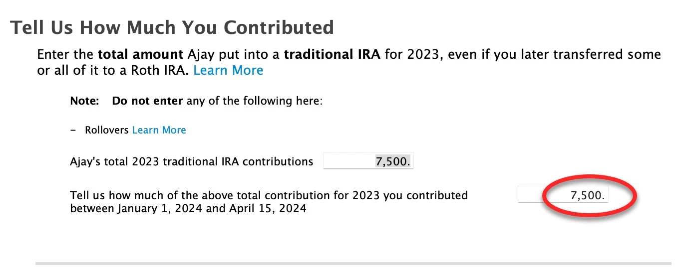 "Enter those contributions included on line 1 that were made from January 1, 2024, through April 15, 2024"