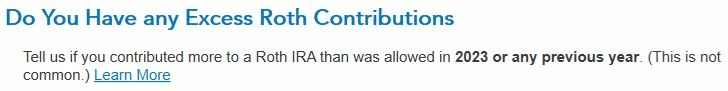 The question above is followed by this statement about your IRA deduction (does not say Roth IRA deduction). I am not close to the MAGI 2023 limit of $138,000. Why is it stating that I cannot take the Roth IRA deduction???