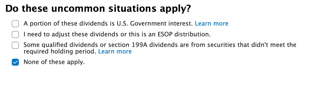 I file in all these details in TurboTax and then in later question sections I am confused about. It seems like some of these checkbox should be selected?