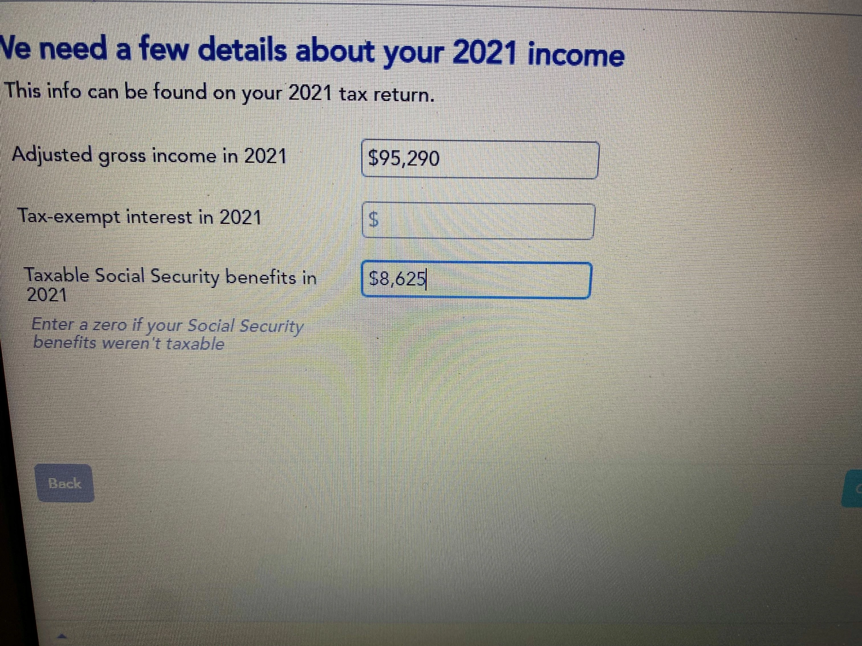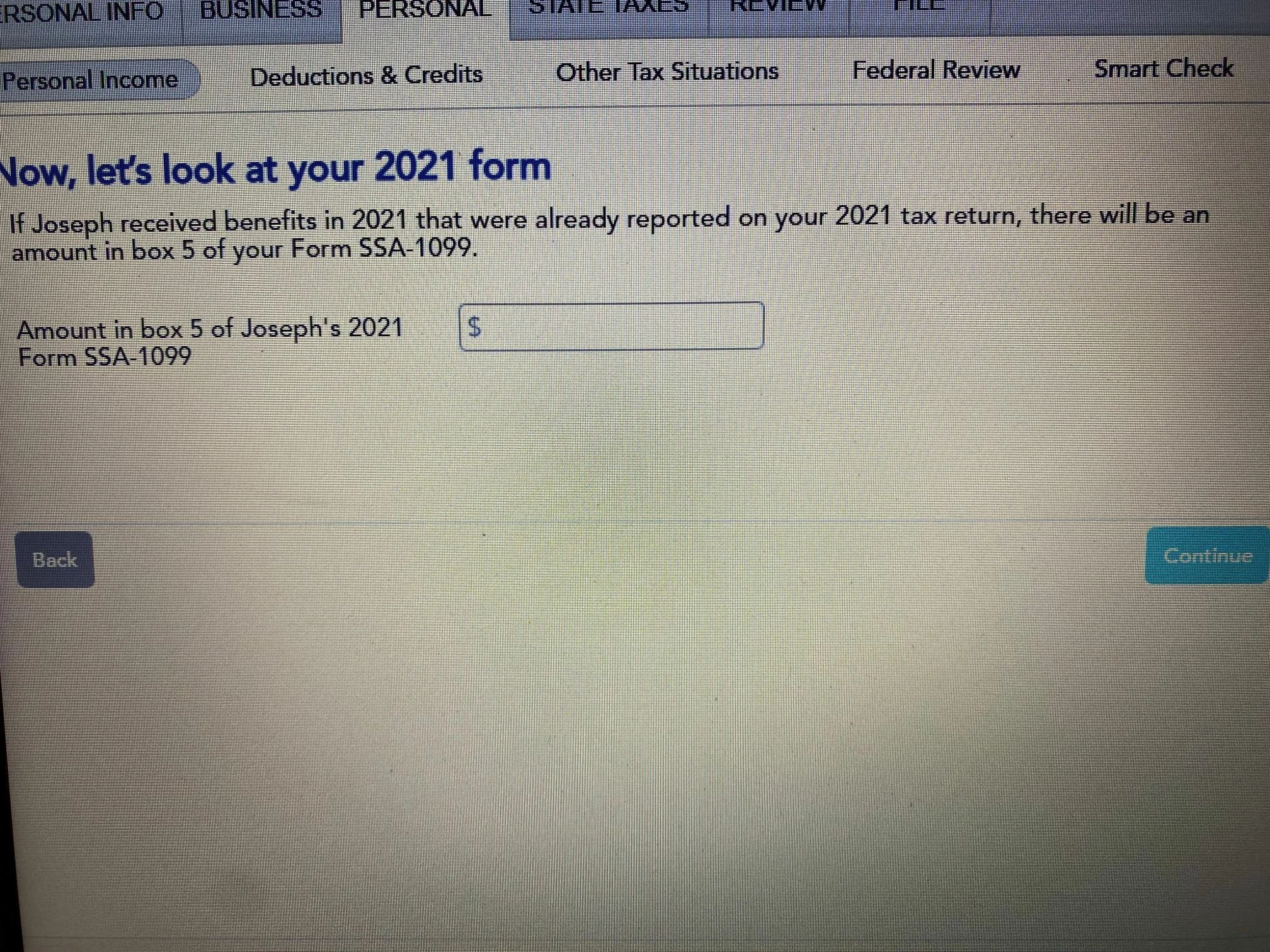 Also, I am entering the SS for prior years and it is asking me "Taxable SS benefits in 2021." He didn't receive any SS in 2021, so am I putting zero or am I supposed to put what he just got in 2024 for 2021? It isn't very explanatory.