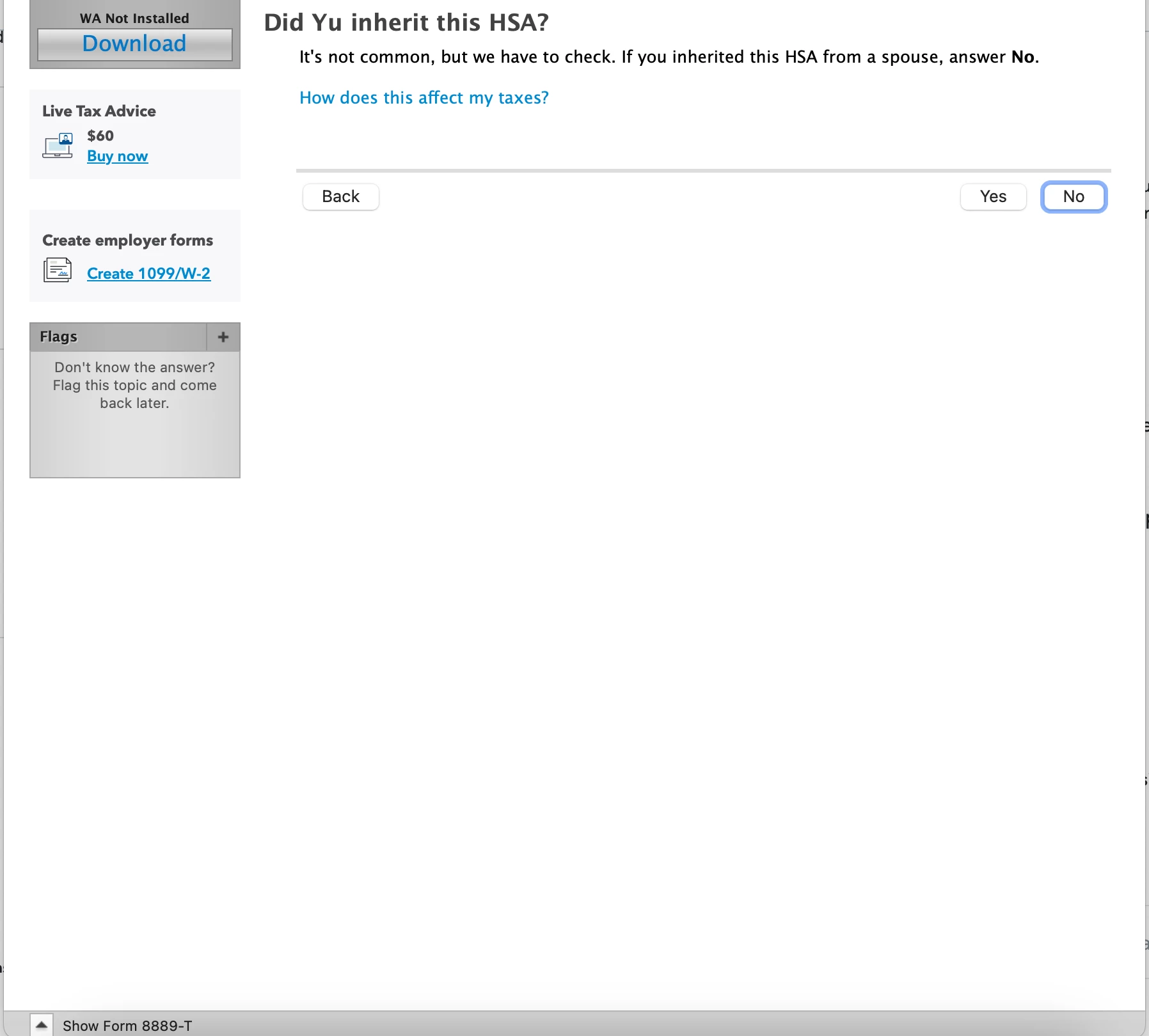 I did not inherit this HSA from my spouse. Do I choose "Yes" or "No"?