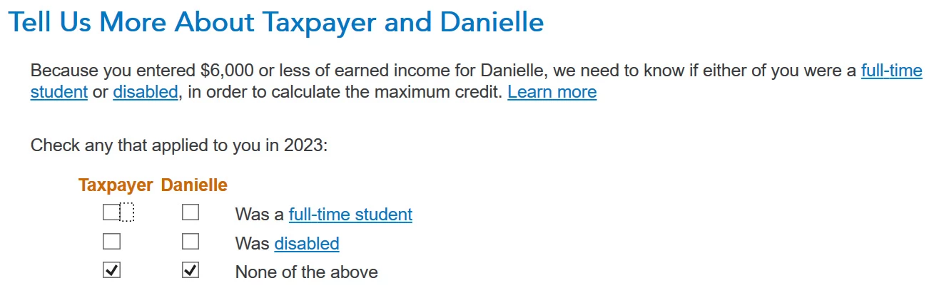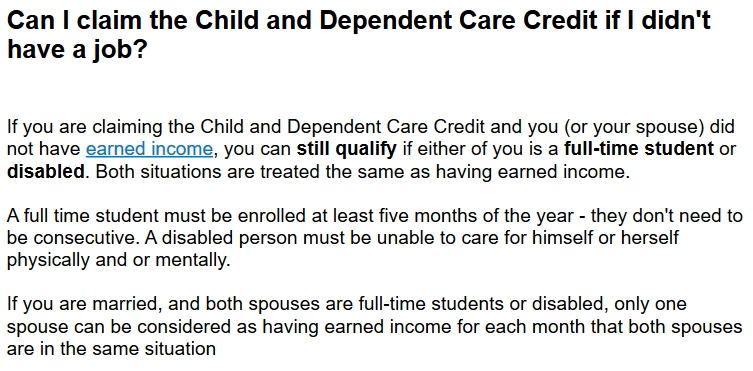 Earned Income Requirement: You (and your spouse in the case of a joint return) must have earned income during the year to claim the credit. See Q16 and Q17 for more information, including special rules that may apply if you are a student or are unable to care for yourself.