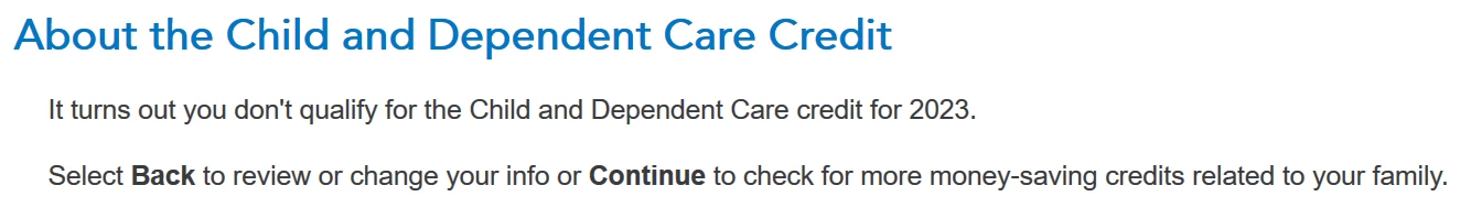 You need to double check your w2 entry screen. It sounds like both w2s are under one name. The child care credit is to allow you to work or go to school. If not disabled or in school, you must both have earned income and the lowest income limits the credit.