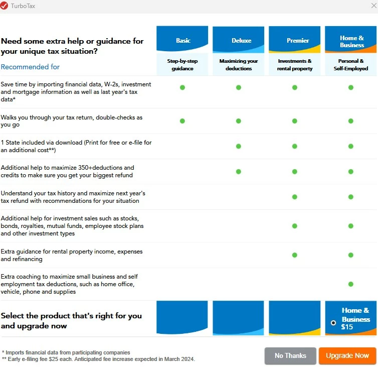 Upgrade from $5 TurboTax Premium to Home & Business
