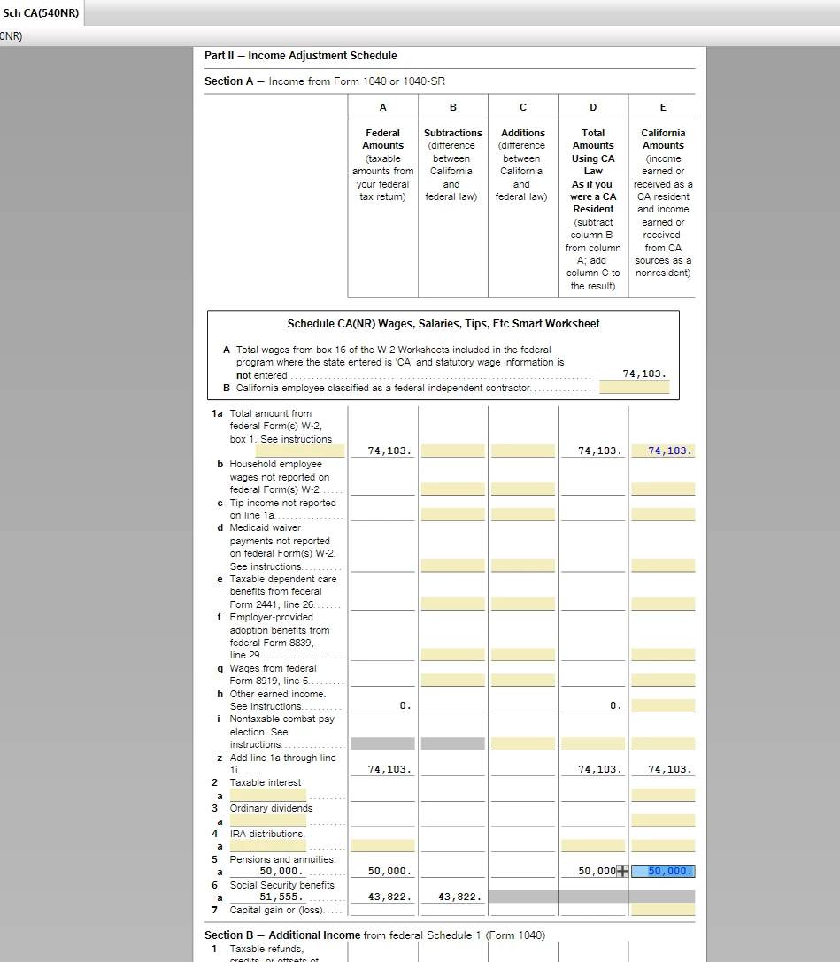 Yes, you would put $50,000 in Column E as well because this is taxable income in the State of California.