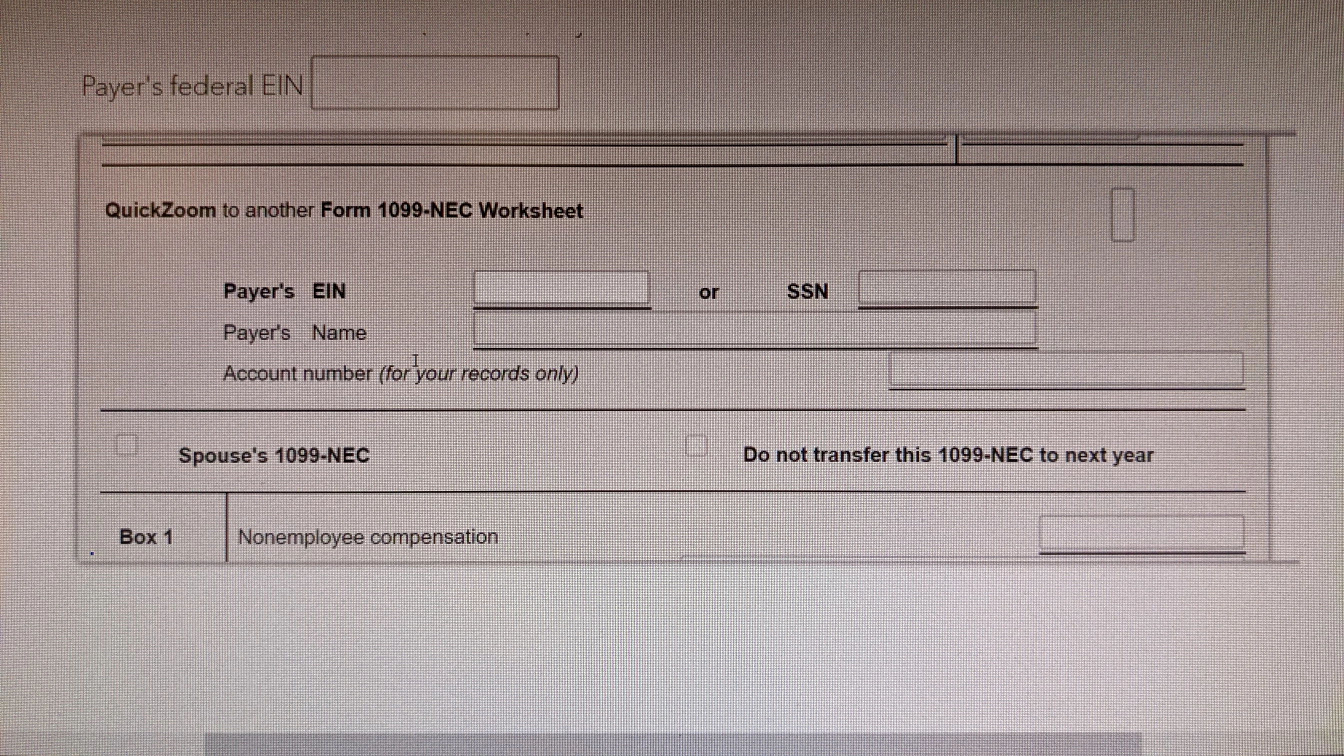 Why can't I input my SSN on Form 1099-NEC? It is getting pulled up at the federal review section. It will only allow payer's EIN and I cannot click on the SSN box.