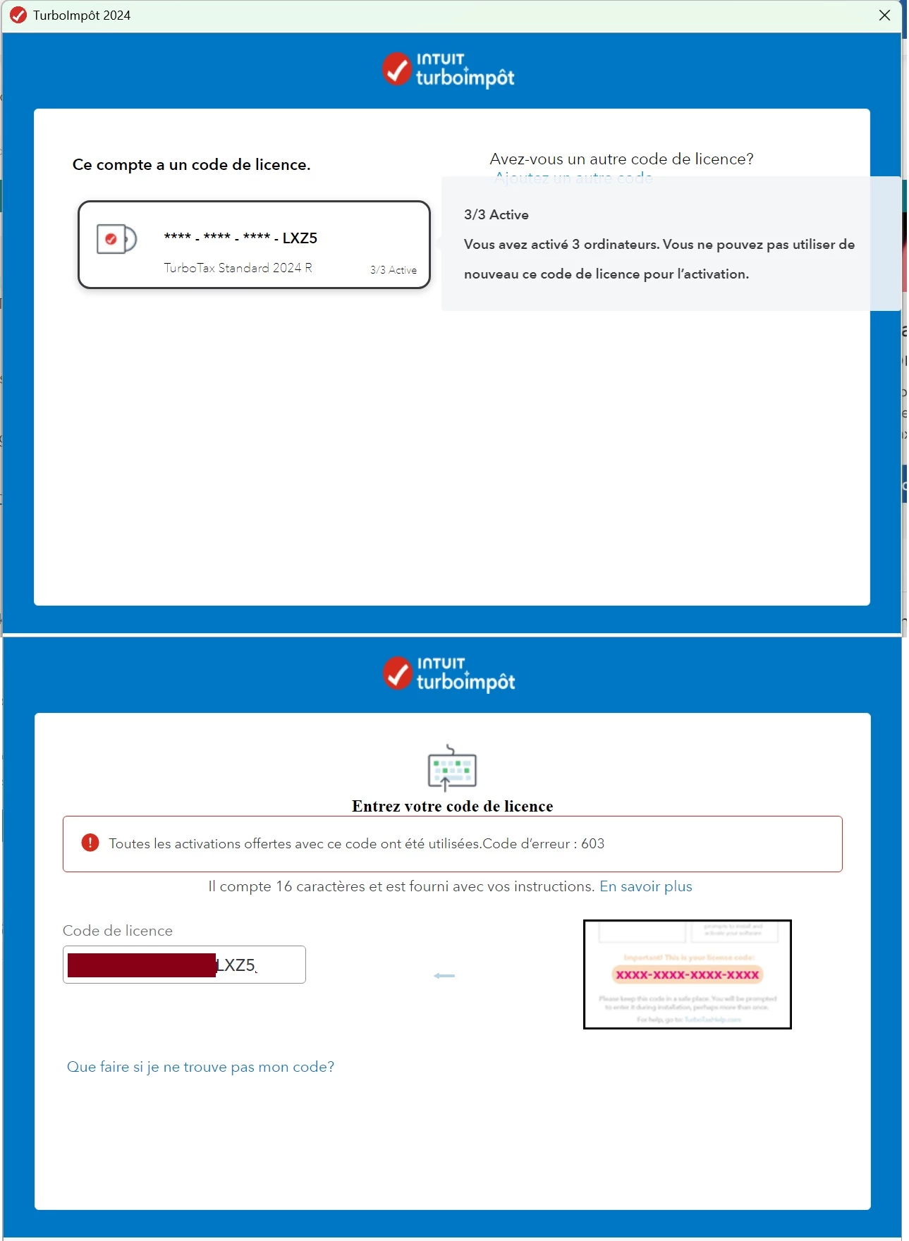 Here I am posting screenshots of what I get on the screen when I try to activate. We are located in Quebec Canada therefore it is in french. Sorry if this is causing you issues, but you can still clearly see that it only has 3 activations. I am not sure why we do not have 5 but maybe it is specific to the version we have, The key was purchased locally at Costco.