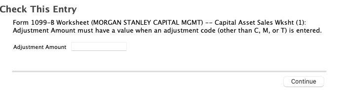Smart check is stating capital asset worksheet adjustment amount must have a value when adjustment code is entered.