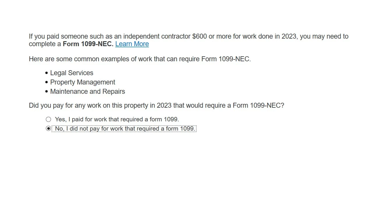 SO....if you didn't hire a non-business, you're not required to issue a 1099-NEC. You do need to keep any invoices as proof that you spent the money on repairs, etc.