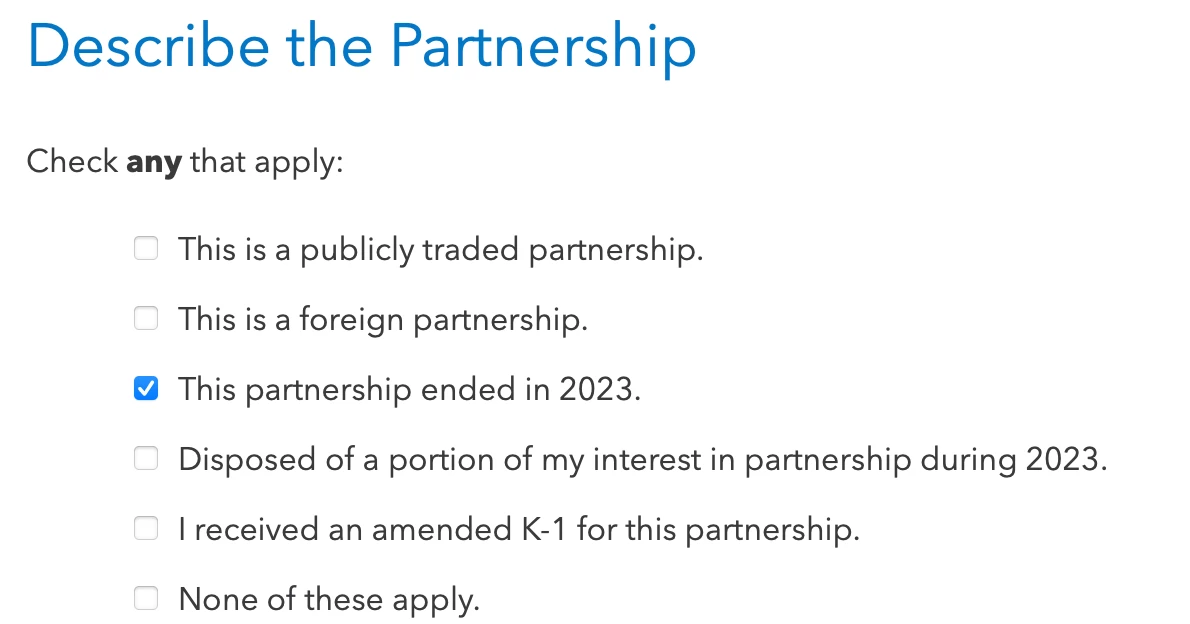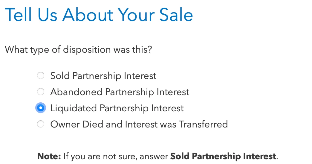 > I selected this as partnership was liquidated as a result of sale of the assets in the partnership
