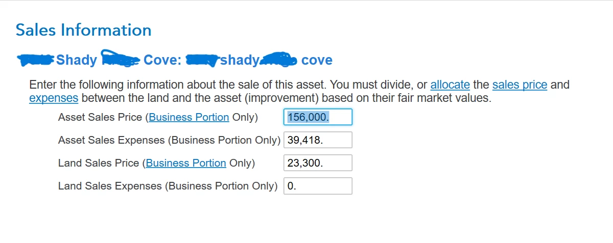 Based on what I'd read, I thought I was to manage the property as I always have in TT - that is, report the year's income (only one month income he paid in January but dude stayed and would not leave until JUNE!), then add in improvements (added each in as an asset with price and start dates - all in June/July), then report sale of the property (so each new asset I entered is placed in service either in June or July, but all show sold 9/1/2023 (closing date). And for the selling price of each asset, I just noted it as the actual price that I paid for it (this seemed easiest way for it to just equal out - and basically ends up showing each of these as a loss for the price we paid).