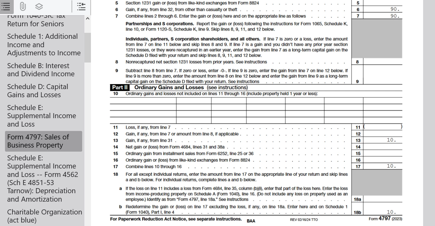 So, after using $100 as the 'BUSINESS PORTION OF THE VEHICLE SALE' in TT, somehow TT came up with $10 as the DEPRECIATION ALLOWED amount. TT then calculated $90 of additional income for me ($100 - $10 = $90). I guess that is correct?