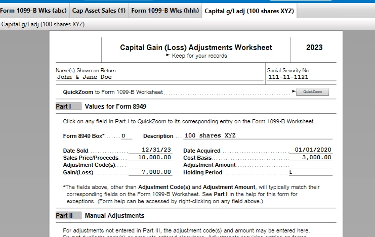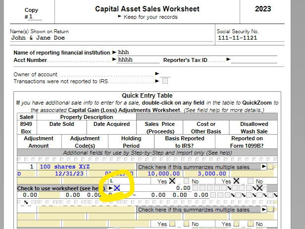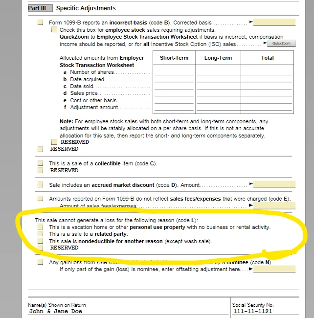 How to get code L on Form 8949 in TurboTax 2023?