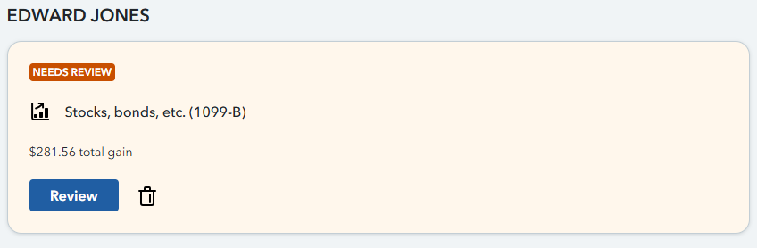 I enter stock transaction ST gains and losses as well as LT gains and losses. this data came directly from my Form 1099 B. Why does TT say "needs review"? no summation?