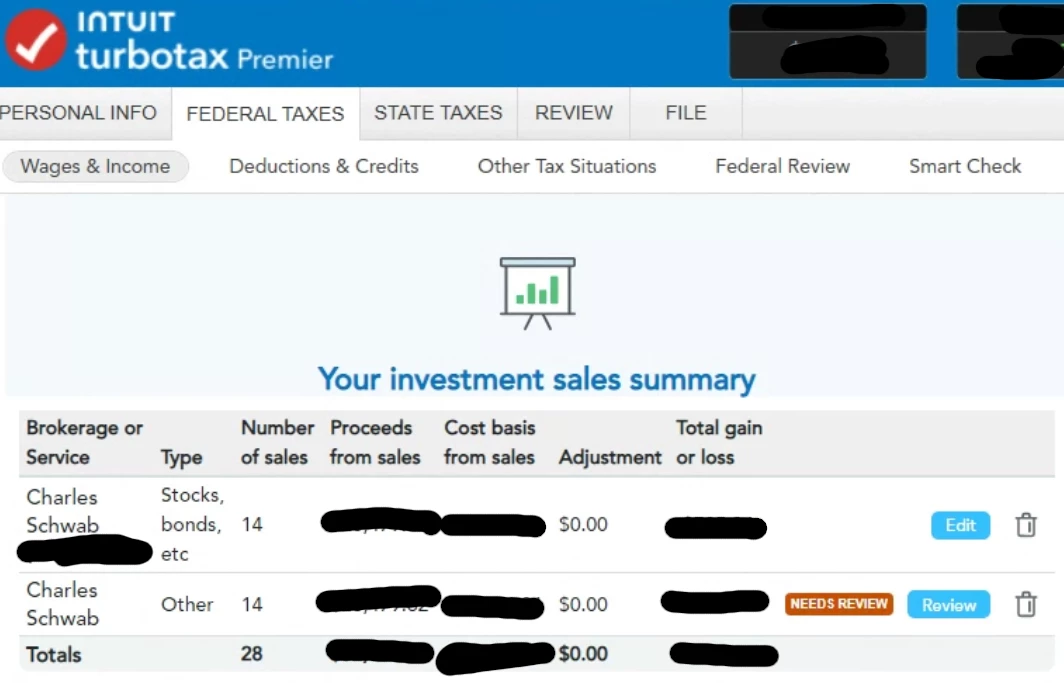 My question really is: "Has anyone been able to import a 1099B TXF into TurboTax 2023 Desktop without it showing these "needs review" notes?" TT ultimately does let me go all the way through federal and state review and validation to e-file (I haven't yet), so I think this is just a GUI issue.