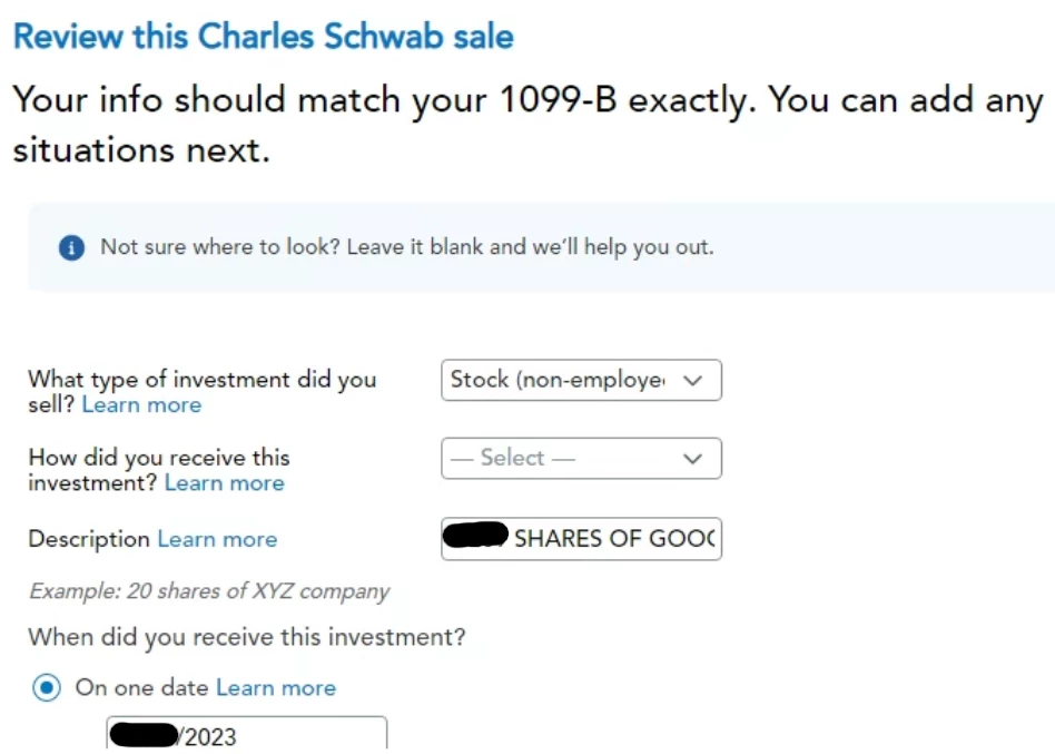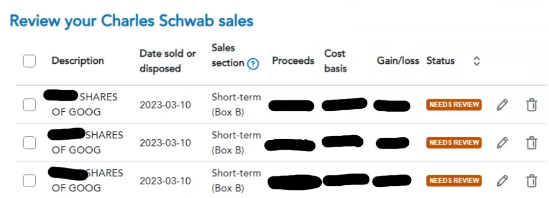 Now, TT 2023 itself imports the TXF just fine, showing all the data in the import details correctly. However, on the "Your investment sales summary" page (apparently a "new and improved GUI") it's showing me "Needs Review" for the imported sales: