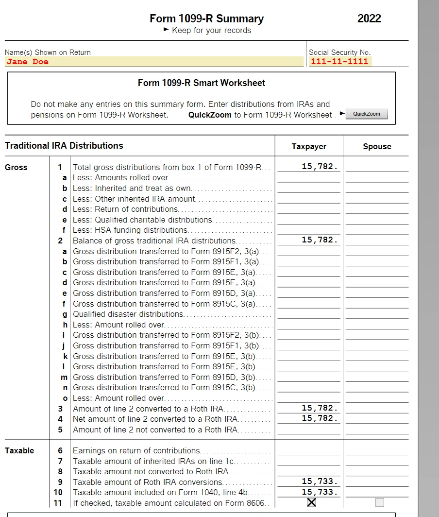 Unlike the first time I did a Roth conversion, TurboTax is putting the inherited IRA RMD distribution in line 7 and the product of the RMD distribution times line 10 in line 12! This seems odd that the inherited IRA is getting mixed in here with my IRA and it seems to conflict with what TurboTax did in 2020 for my first Roth conversion.