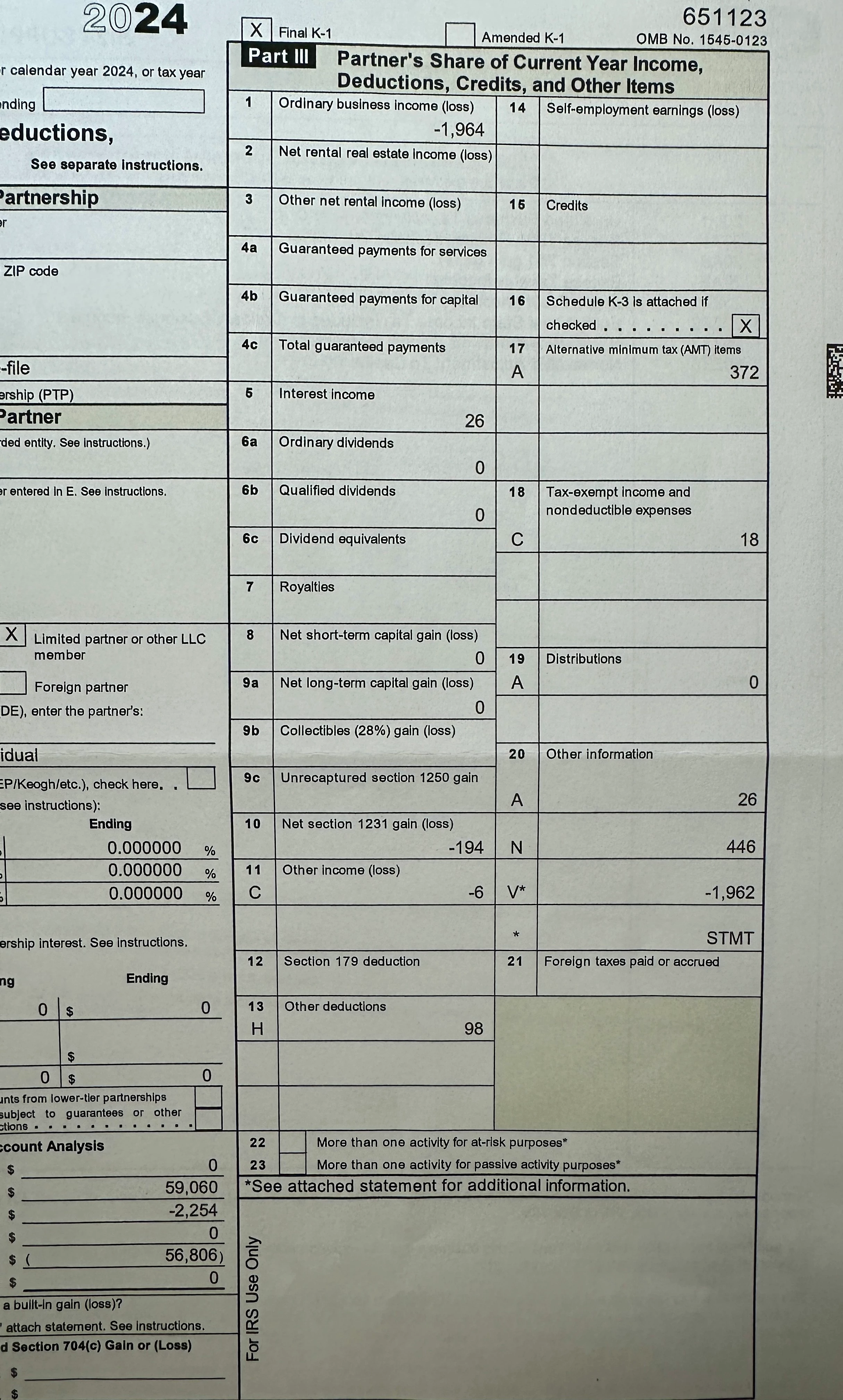 We sold some stock in a company that generated a Final K-1.