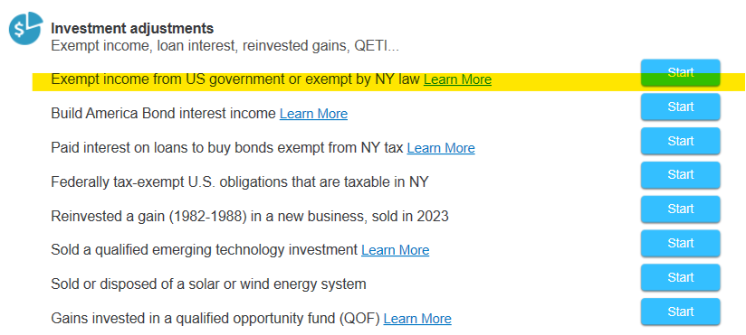 I received a large amount of interest income from US obligations that TurboTax should as an adjustment to my NYS income tax return as not subject to tax. On the federal return, Schedule B, the accrued market discount on three Treasury notes I purchased that matured in 2023 are also included as interest and reported as separate items. The accrued market discount does not appear as an adjustment on the NYS income tax return. Should it also be excluded from NY taxable income? If so, do I have to make the change manually?