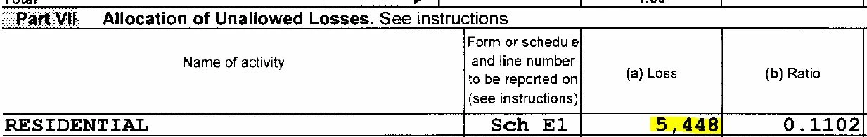 Passive Losses Carryovers From Prior Years - Where to Find on Schedule E